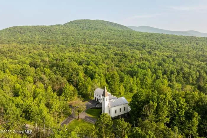 Welcome to Potter Mountain House, a masterfully reimagined Greek Revival church turned luxury designer estate. The original timber-framed structure was constructed in 1837 as the Manorkill Methodist Church, serving its community for over a century before being carefully dismantled and relocated to its current site in Gilboa, NY.