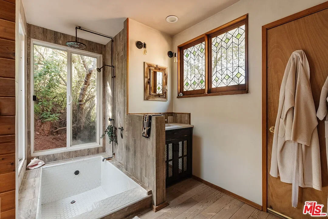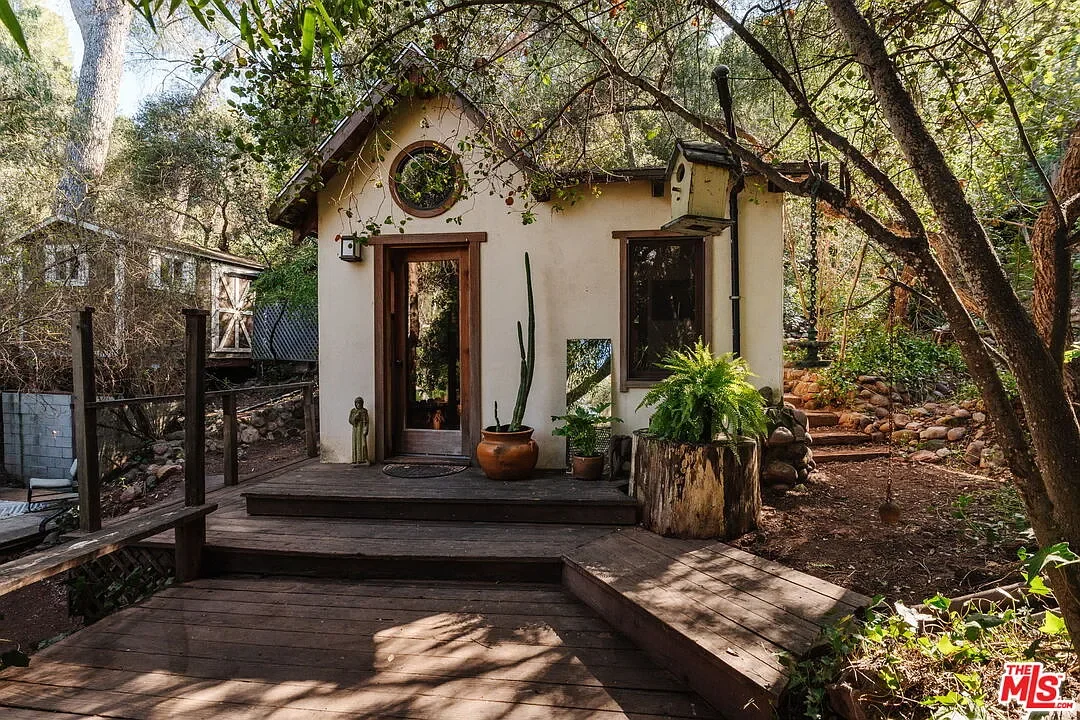 The Butterfly House is a 1-bedroom, 1-bath vintage cabin rich in character, featuring stone accents, skylights and stained glass, two wood-burning fireplaces, a clawfoot tub, and a handcrafted kitchen. Follow the winding path to the Teahouse, set against the red rocks a quiet refuge complete with a lofted sleeping space, pebble-stone spa bath, and soaking tub. Above it all, the Angel's Nest a glass-and-wood studio rests in the treetops, offering a wood stove, infrared sauna, spa bath, expansive decks enveloped by the oaks and intimate canyon views.